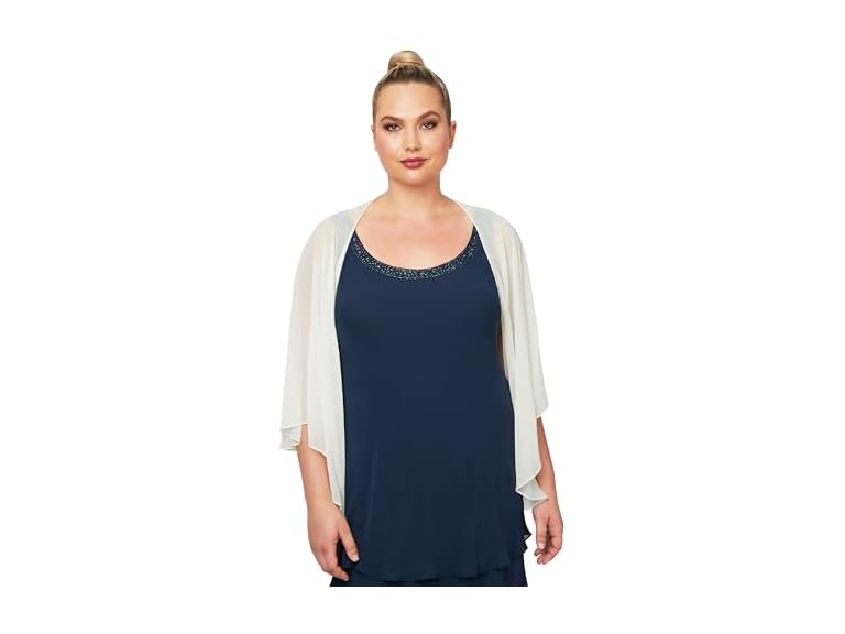 - (1) S.L. Fashions Women's Plus Size Multi-Wear Sheer Chiffon Shawl for Evening Dress, Ivory, 1x/2x