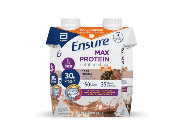 - (1) Ensure Max Protein Shake | Cafe Mocha | Ready to Drink | 30g Protein for Muscle Health | 1g Sugar, 4g Fiber | 11 fl oz, 4 Pack