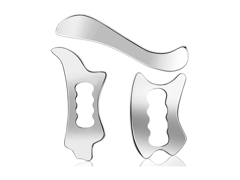 - (1) Moikiwi 3PCS Gua Sha Tool, Stainless Steel Muscle Massage Tool, Scraper Tool for Soft Tissue Physical Therapy Stuff, Used for Back, Legs, Arms, Neck, Shoulder, B