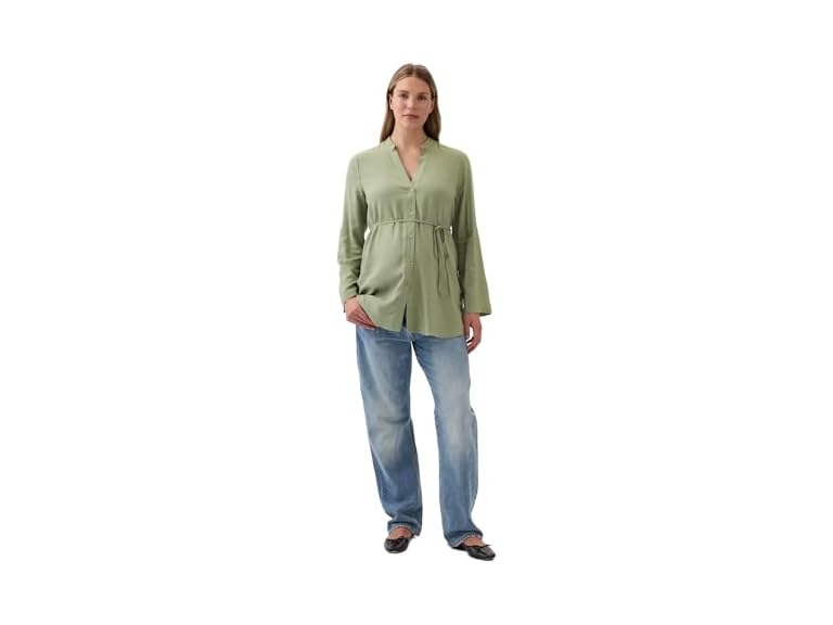 - Soft linen-blend maternity shirt