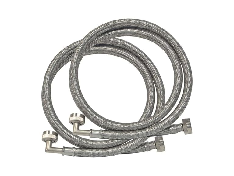 - Eastman PVC Coated Braided Washing Machine Hose with 90 Degree Elbow, Pack of 2, 3/4 Inch FHT x 3/4 Inch FHT Connection, 4 Foot Stainless Steel Connector, 48319
