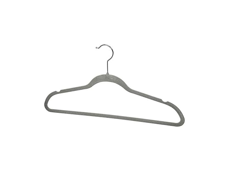 - Velvet flat hangers fit better in closet than round plastic hangers; provide protection for delicate garments
