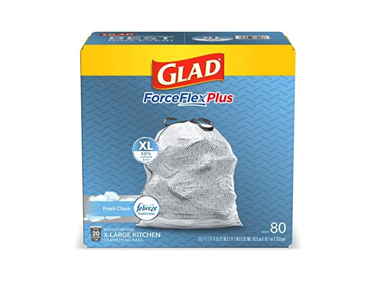 - FORCEFLEX STRENGTH: Prevent rips and tears with Glad Stretchable Strength design, allowing tall trash bag to expand over sharp edges