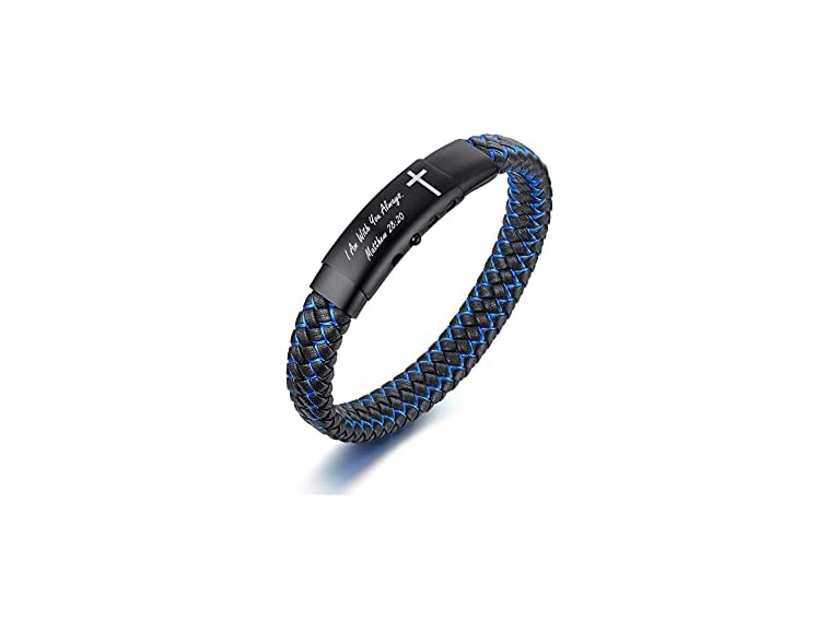 - (1) MEALGUET I Am with You Always. Matthew 28:20 Bible Verse Religious Bracelets Christian Cross Scripture Engraved 2-Tone Black Blue Braided Leather Bracelet for Men