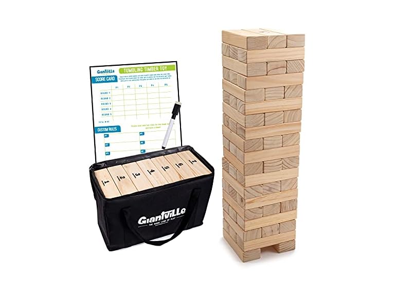 - HIGH-QUALITY & DURABLE: Each block piece is made from 100% pine wood that provides long-lasting durability. The premium quality wood withstands wear and tear and won’t receive damage after each tumble of the tower.
