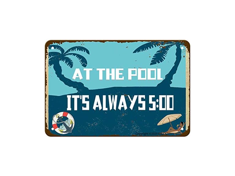 - (1) ANJOOY Tin Sign-at The Pool It's Always 5:00-Glare,Anti-Fading,Suitable for Cafes,Restaurants,Hotels,Farmhouses,Garden Gate Wall Plaque of Art Decoration(8"x12")