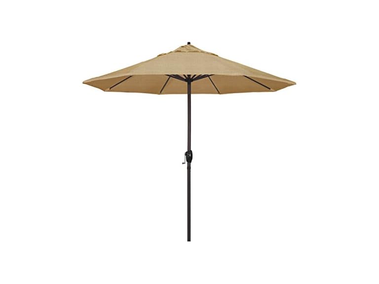 California Umbrella has been producing high quality patio umbrellas and frames for over 50 years. The California Umbrella trademark is immediately recognized for its standard in engineering and innovation among all brands in the United States. As a leader in the industry, they strive to provide you with products and service that will satisfy even the most demanding consumers. Their umbrellas are constructed to give consumers many years of pleasure. Their canopy designs are limited only by the imagination. They are dedicated to providing artistic, innovative, fashion conscience and high quality products for all of your needs. Expertly designed and detailed, this deluxe automatic tilt market umbrella eliminates the need for a cord to enable the tilting operation. The enhanced counterbalance mechanism is within reach and works easily to tilt the umbrella at desired angles. e. The umbrella is comprised of a high impact runner, notch and cap to ensure maximum durability. Made from 100% solution dyed acrylic yarn, Sunbrella fabric is the best choice in the outdoor industry- durable and easy to maintain . This type of fabric is water resistant and through research, it has been proved that the fabric provides up to 98-Percent protection against harmful UV rays. The darker the color of the fabric- the stronger the protection. You can use Sunbrella fabrics for as many years as you please and still get the same degree of protection as the first day you bought it. Awarded "Seal of Recommendation" by the Skin Cancer Foundation, Sunbrella fabric is simply the best you can get. Not only will this umbrella withstand weathering, but create a radiant atmosphere outdoors. Please note that all umbrellas are sold without the base. The base can be purchased separately.