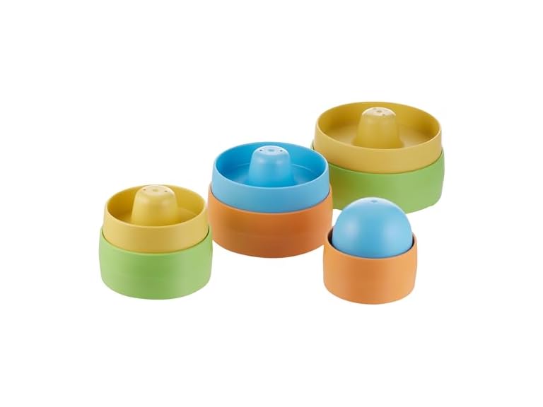 The Green Toys™ Stacker takes a classic toy and makes it safer and more playful. The eight whimsically colored nesting pieces stack easily from large to small, while also allowing little builders to use their imagination and stack in any order. Little ones can develop hand-eye coordination and color recognition while having plenty of Good Green Fun™. Most importantly, the Green Toys Stacker is safe. Its unique design has no center post. No BPA, PVC, phthalates, or external coatings. This Stacker is made in the USA from 100% recycled plastic which save energy and reduce greenhouse gas emissions. Packaged using only recycled and recyclable materials and printed with soy inks.