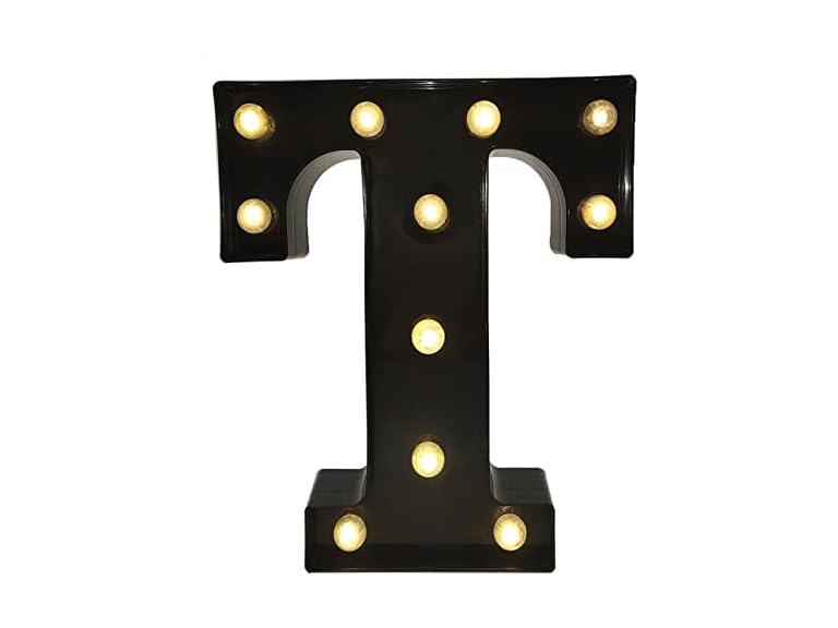- (1) Proyatech Black Alphabet Marquee Letters LED 26 Alphabet Light Up Letters with Diamond Bulb Battery Powered Led Letter for Wedding Birthday Christmas Home Bar Decoration Party Night Light (Black Letter T)