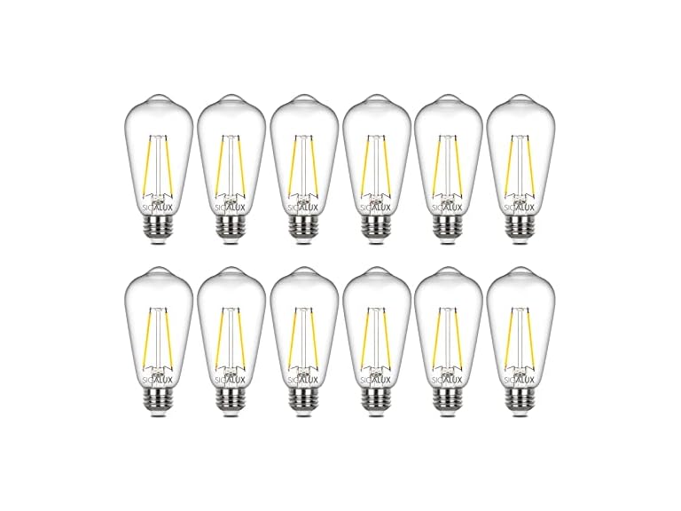 In the Box: (1) Sigalux Edison Bulbs, E26 LED Bulb ST58 Filament Clear Non-Dimmable Vintage Light Bulbs 40W Equivalent 400LM Daylight White 5000K 15, 000hrs 12 Pack
