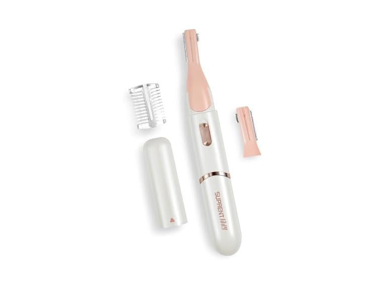 - (1) SUPRENT Women's Facial Hair Remover & Eyebrow Trimmer with Pivoting Head - Rechargeable Eyebrow Razor Painless Facial Trimmer on Lips, Cheeks, Ears, Neck and Chin - Easy Cleaning - White