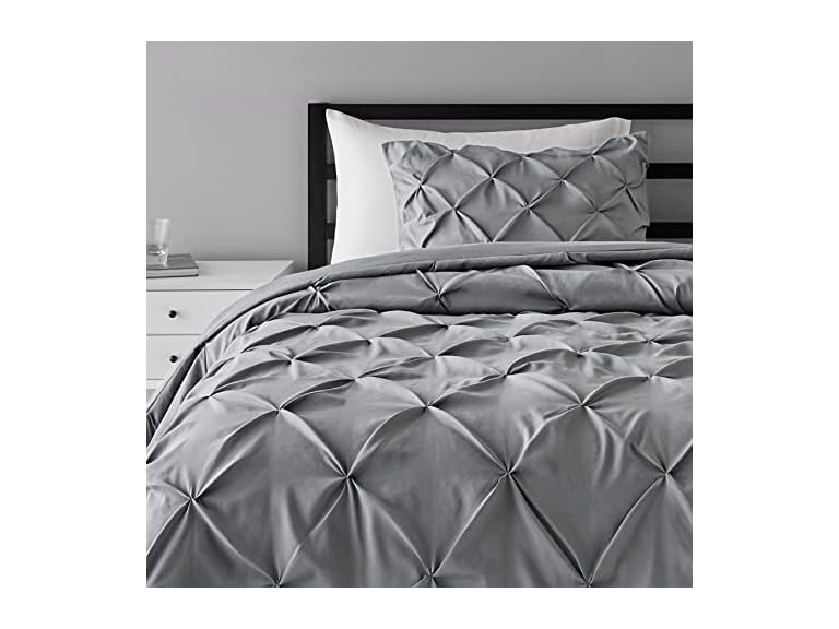 - (1) Amazon Basics 2 Piece Soft, Lightweight Down-Alternative All-Season Comforter and Bedding Set, Pinch Pleat, Twin/TwinXL, Dark Grey