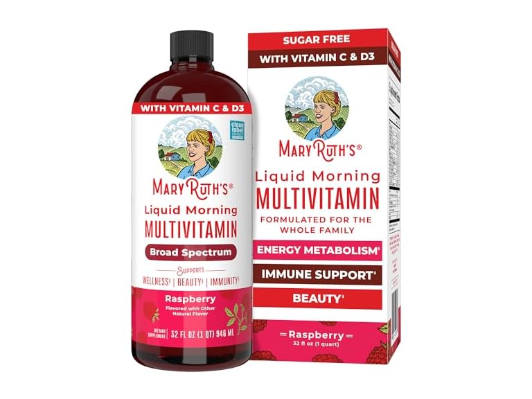 - Liquid Daily Multivitamin for Women, Men, & Children: Support your body’s nutrient needs, all with no hard-to-swallow pills. MaryRuth’s delicious Raspberry Liquid Morning Multivitamin is an easy-to-take liquid with minerals, amino acids, and multiple essential vitamins including antioxidant vitamin C, vitamin D, vitamin E, and beta carotene.