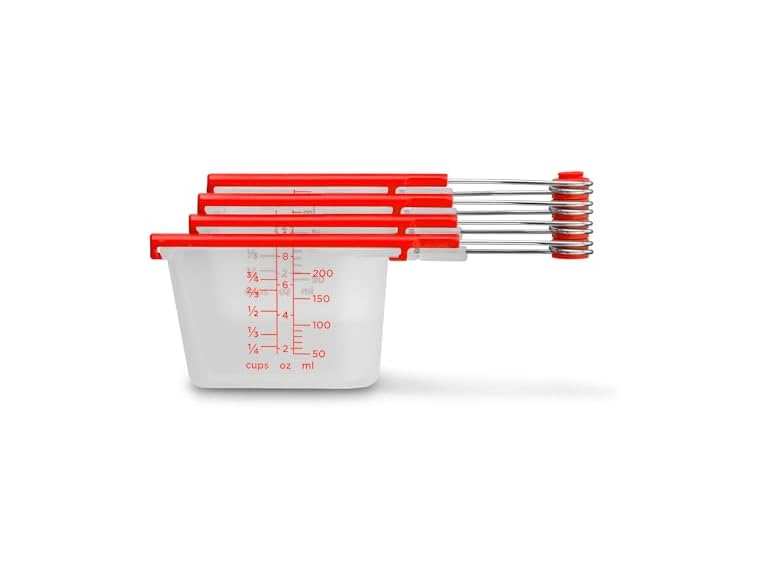 - (1) Dreamfarm Levups Self-Levelling Measuring Cup Set, Metric & Imperial Measurements up to 1 Cup - Pack of 4, Red