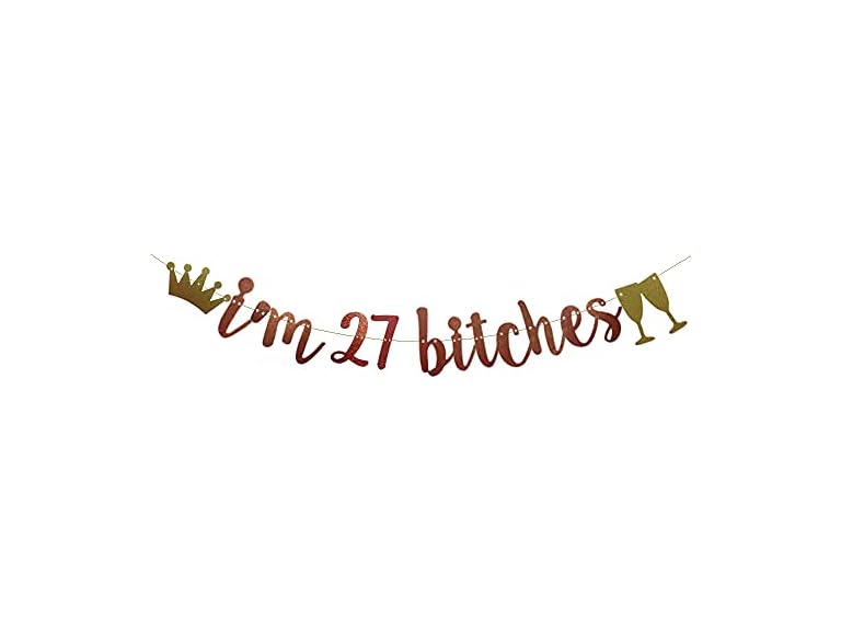 - (1) I'm 27 Bitches Banner Rose Gold Glitter Paper Funny Party Decorations for 27th Birthday Party Supplies Happy 27th Birthday Cheers to 27 Years Letters Rose Gold Betteryanzi