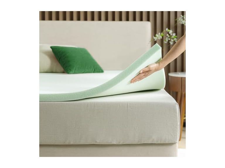 - REFRESHING SLEEP, BUILT RIGHT IN - If good sleep is your cup of tea, then you’ll love our recipe for rejuvenating rest; refreshing green tea and moisture-absorbing charcoal are infused into this memory foam topper that cradles you so you awake restored and refreshed