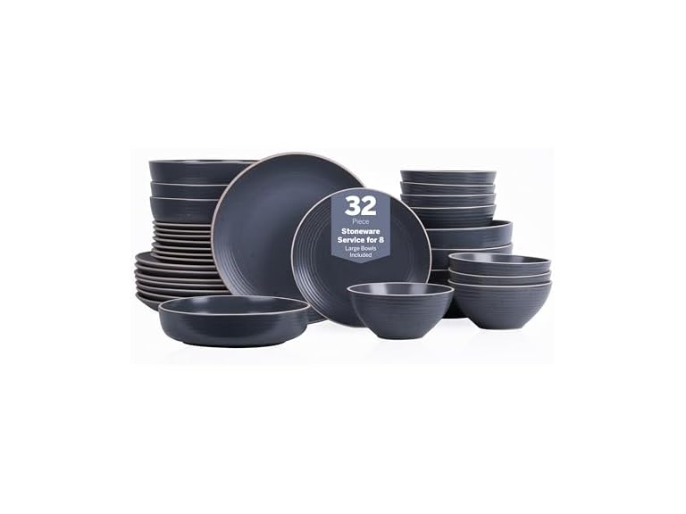 - Full-service for 8: Includes 32 pieces—8 dinner plates, 8 salad plates, 8 soup bowls, and 8 pasta bowls—perfect for families or entertaining with style and ease.