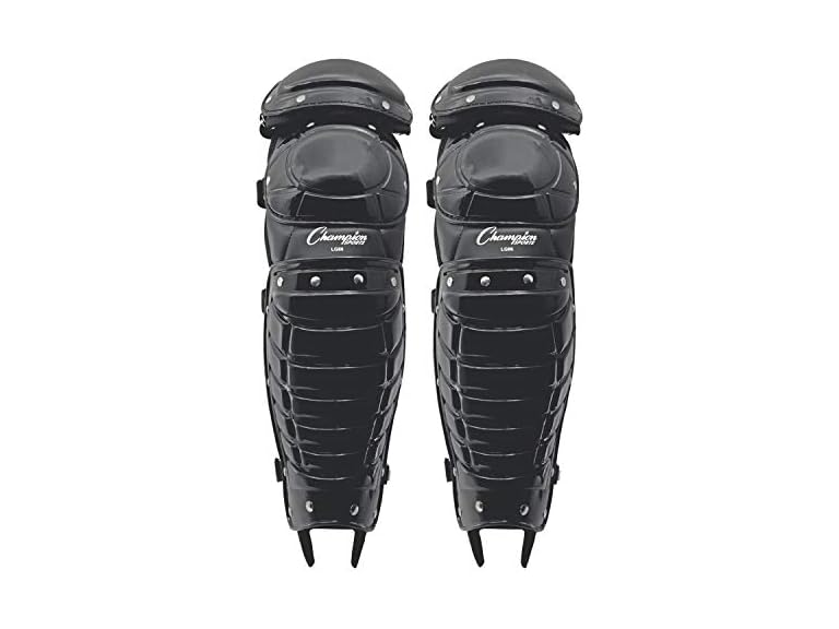 - (1) Champion Sports Umpire Leg Guards: Double Knee Umpire’s Shin Guard with Wings for Baseball & Softball - 16.5" Umpiring Shin Pads for Adults - Black
