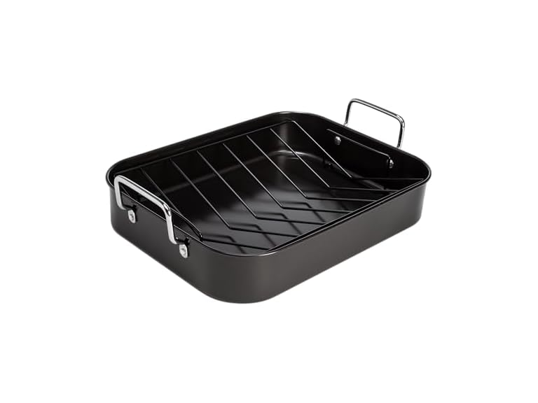 - (1) Ecolution Nonstick Roasting Pan with Rack, Carbon Steel with Premium Nonstick, Oven Safe to 450 F, Made without PFOA, Dishwasher Safe, 16-Inch x 12-Inch x 3-Inch