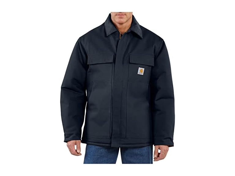- (1) Carhartt Mens Loose Fit Firm Duck Insulated Traditional Coat Work Utility Outerwear, Dark Navy, 4X-Large US
