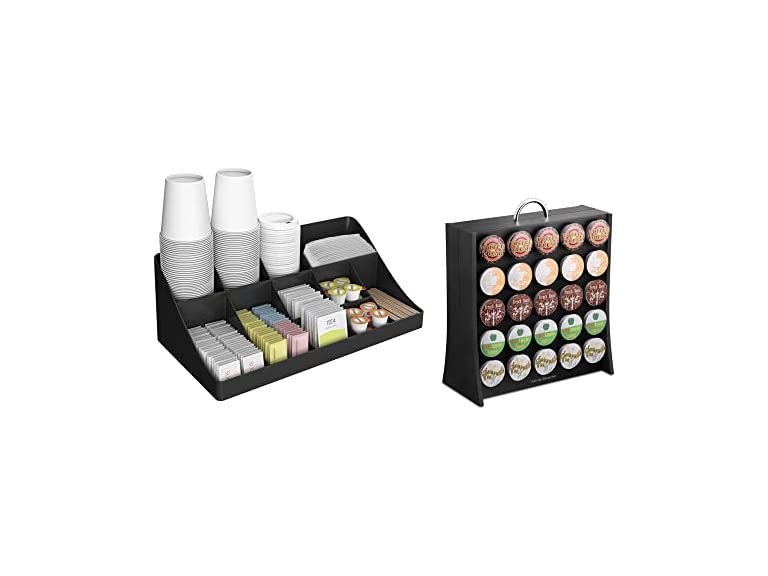 - ULTIMATE 2PC COFFEE TEA CONDIMENT ORGANIZER: Complete condiment and beverage accessory solution organizes any size office breakroom or beverage space where employees gather to eat and drink at work.