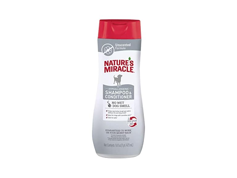 Nature’s Miracle® pet stain and odor removers have been a trusted brand for pet mess cleanup for 40 years. Nature’s Miracle stain and odor removers, virus disinfectants, training aids, litter and waste management and grooming products offer solutions for life with pets, from everyday messes to the toughest cleanup jobs. Whatever pets do, you can trust Nature’s Miracle products to undo. When strong dog odors start to crinkle your nose, it’s time for Nature’s Miracle™ Hypoallergenic Shampoo & Conditioner! The reformulated shampoo and conditioner helps neutralize odors and freshens coat, without the wet dog smell. Plus, the formula is unscented, contains aloe vera and is pH balanced for dogs. This shampoo provides the ultimate grooming experience. Apply a liberal amount of shampoo to wet coat and work into a lather. Gently massage from head to tail, while avoiding eyes. Rinse completely and repeat as necessary for the toughest messes and odors. Brush coat to remove tangles and towel dry thoroughly. Matted and tangled areas may require special attention. Additional shampoo can be applied directly to these areas. Use only for dogs.