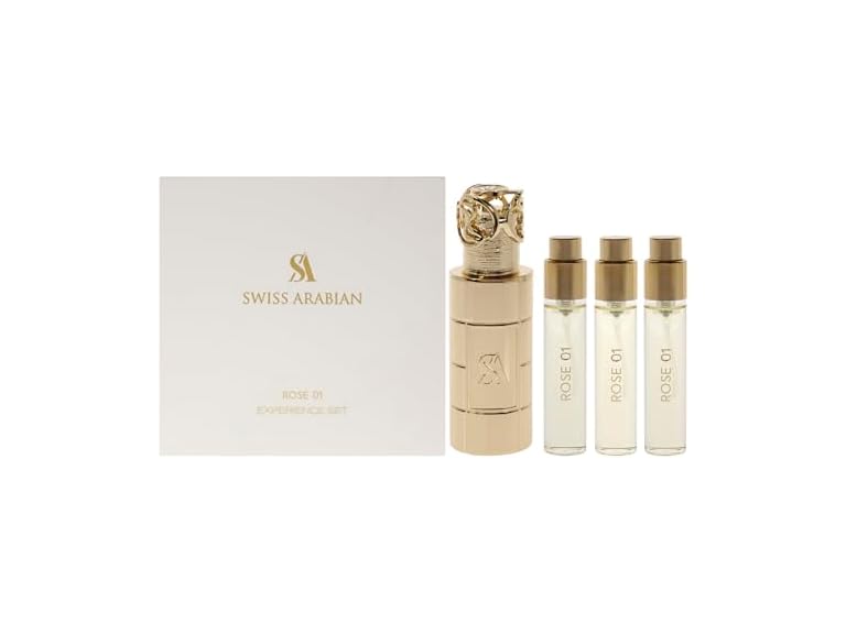 (1) Swiss Arabian Rose 01 Giftset - Arabian Perfumes for Women and Men - Long Lasting Perfume - Floral, Rose, Vanilla Perfume - 3 Bottles with Case - 4 pc