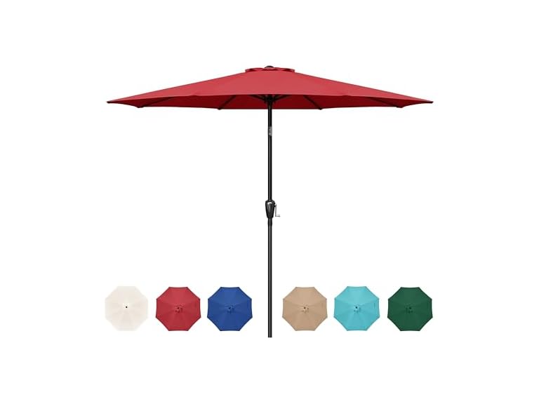 - (1) InfiniPower 9FT Outdoor Patio Umbrella with 8 Ribs, Table Umbrellas with Push Button Tilt/Crank, UV Protection Waterproof