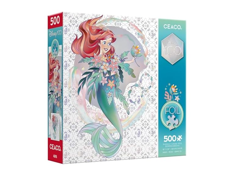 - (1) Ceaco - Disney's 100th Anniversary - Foil Puzzle - The Little Mermaid - Platinum Princess Ariel - 500 Piece Jigsaw Puzzle
