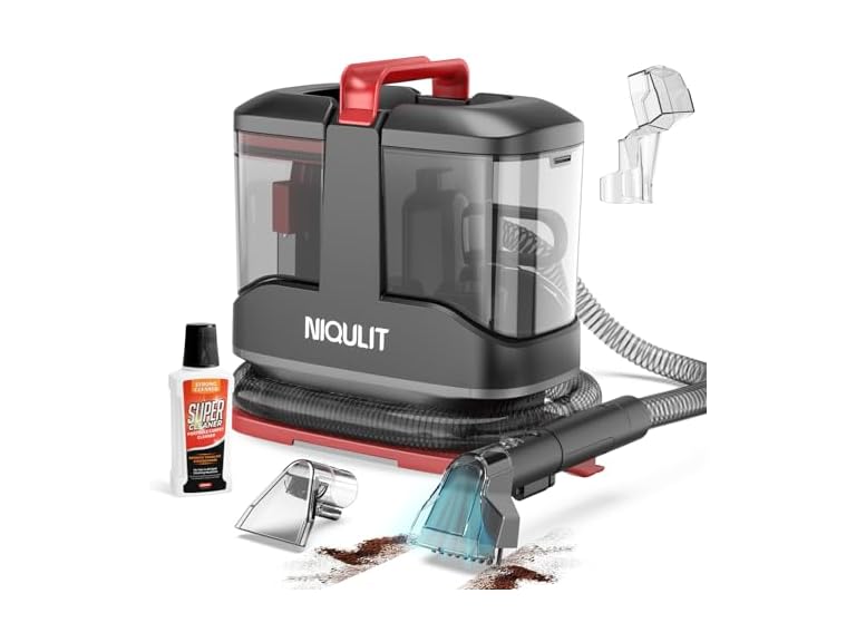 - 【 All-IN-ONE FUNCTION】 The NIQULIT Portable Carpet & Upholstery Spot Cleaner is equipped with a 450W motor, which provides an ultra-strong suction power of 15Kpa, capable of cleaning deeply on the carpet surface. By spraying, brushing, and suction steps, our upholstery cleaner effortlessly tackles food spills, pet stains, and embedded dirt, making it the ultimate carpet cleaner and spot cleaner for any household.