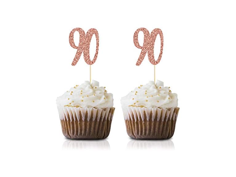 - (1) MAGJUCHE Rose Gold 90th Birthday Cupcake Topper
