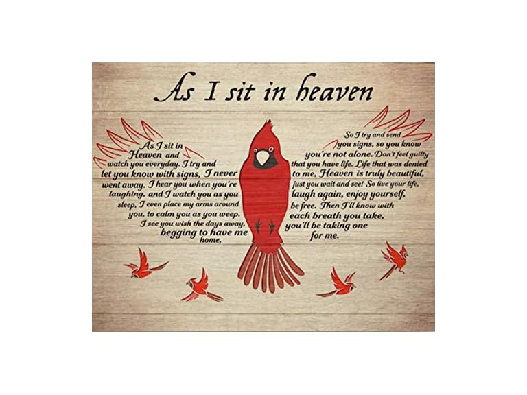 - ➋ Design style: When I was sitting on the cardinal who fell from heaven, this metal poster is specially designed for lovers of heaven, cardinal, bird and so on. When I sit in the sky and look at you every day, I will try my best to make you aware of my signs. I have never left. When you hear your voice, I look at you while I sleep and even put my arm Hold by your side. The tin label poster is suitable for those who want to decorate their house or collection
