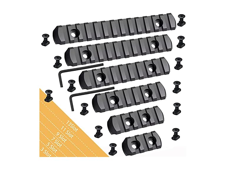 - Ultralight rail with solid polymer construction and low profile design reduces bulk. 13 Slots 0.65Oz, 11 Slots 0.56Oz, 9 Slots 0.48Oz, 7 Slots 0.36Oz, 5 Slots 0.28Oz, 3 Slots 0.19Oz, much lighter than aluminum alloy, high strength and good safety.