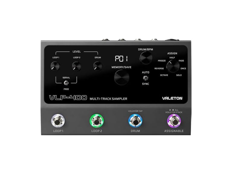 - Four footswitches for comprehensive control over loops, effects, and drum machine