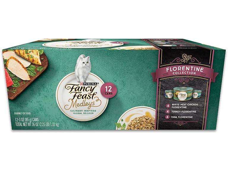 - (12) Purina Fancy Feast Medleys Florentine Collection Adult Wet Cat Food Variety Pack, 3 OZ Cans