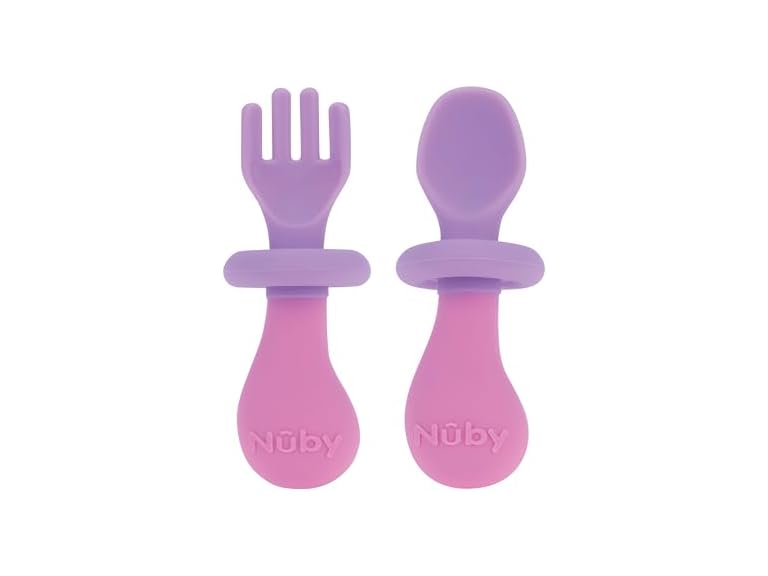 - EASY CLEANING: Nuby's First Fork and Spoon are dishwasher safe, making cleanup a breeze for busy parents