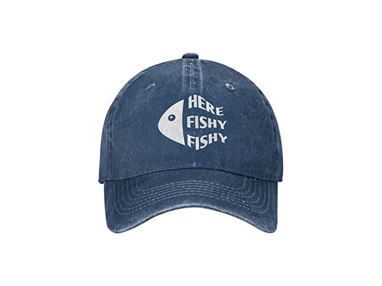 - Here Fishy Fishy Fishy Baseball Hats For Men Graphic Washed Polyester Adjustable Hats
