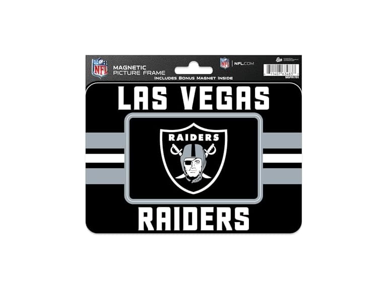 - NFL Las Vegas Raiders Fans! Cheer on your team and show off your pride be displaying your true colors in your home. Cheirsh your memories with this magnetic frame and magnet. Simply punch out the magnetfor your 2 piece set.
