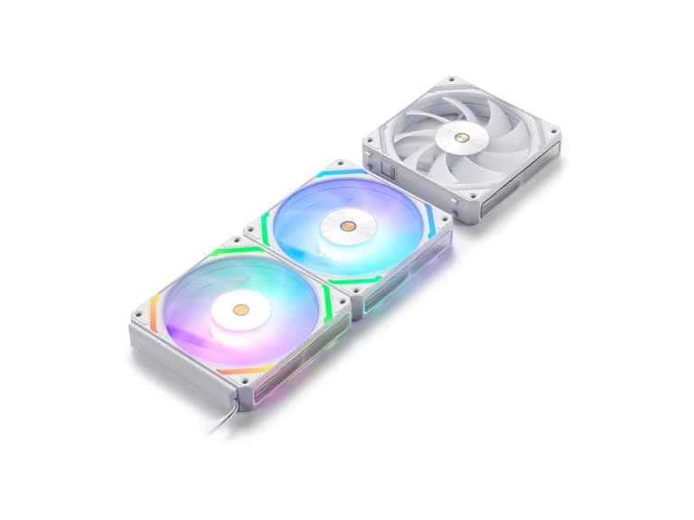 - (1) LTC CF-121D 120mm PC Case Fan, Daisy-Chain Connection, 5V 3Pin ARGB Lighting, 4 Pin PWM Case Fan, for Radiator/Computer Case Cooling, 120x120x25mm, 3 Pack, White