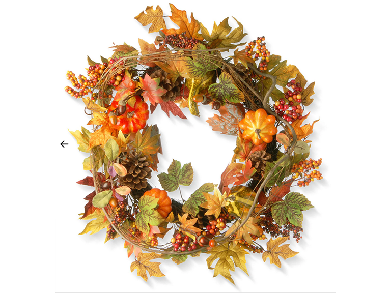 - Designed and decorated to look and feel lifelike, this 24 inch autumnal wreath decoration is the perfect complement to any fall-themed arrangement.
