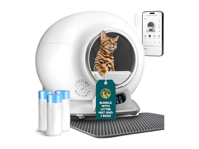 - 【Designed for Comfort】 Spacious, open drum with smooth low-RPM rotation lets cats turn, dig, and exit naturally. Built for cats up to 18 lb; Auto-cleaning pauses for kittens under 3 lb or pregnant/nursing cats, ensuring gentle, worry-free use
