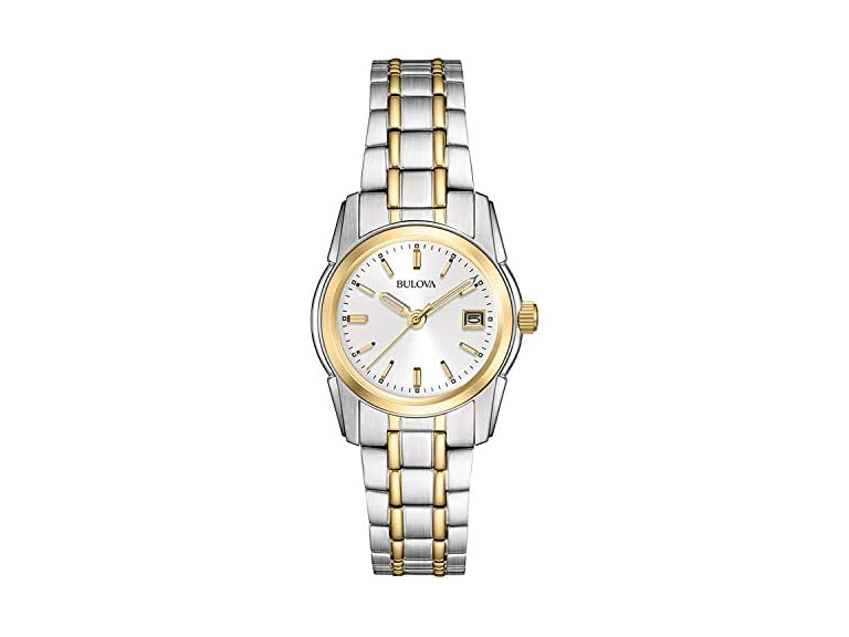 - (1) Bulova Ladies' Classic Two-Tone Stainless Steel 3-Hand Calendar Date Quartz Watch, Silver-White Dial (Style: 98M105)