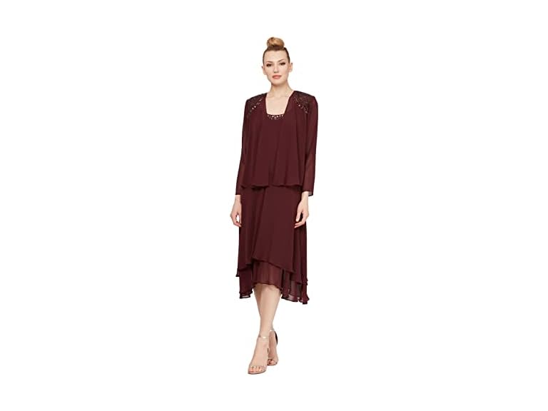 - (1) S.L. Fashions Women's Mother of The Bride Dress with Embellished Neckline & Shoulder, Wedding Guest (Petite and Regular Sizes), Fig, 18