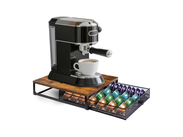 - Built to Last:This Nespresso Pods Holder is Made With a Tough 15×3mm Carbon Steel Frame and a 12mm Reinforced Panel, Supporting up to 100lbs (45kg). Handcrafted by Skilled Artisans Using Eco-friendly Materials, Each unit Undergoes 20% Stricter Quality Control than Machine Production to Ensure Durability for Years to Come.