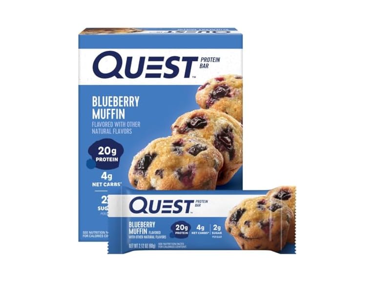 - (1) Quest Nutrition Blueberry Muffin Protein bar, 8.48 Oz, 4 Count