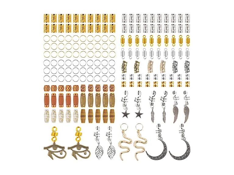 - (1) Nafaboig 180PCS Dreadlock Accessories with Beads, Hair Jewelry for Braids - Metal Gold Silver Beads, Rings, Cuffs, Clips, Coils, Charms for Hair Decoration