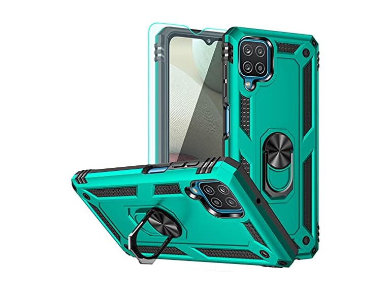 - (1) YZOK for Galaxy A12 Case with HD Screen Protector,[Military Grade] Ring Car Mount Kickstand Hybrid Hard PC Soft TPU Shockproof Protective Case for Samsung Galaxy A12 (Teal)