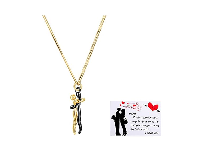 - Hug Necklace:Affectionate hug Necklace means that two hearts attract each other and miss each other. The design of the two characters hugging together symbolizes passion and beautiful love. The design is novel and unique, which makes you exude elegant charm.