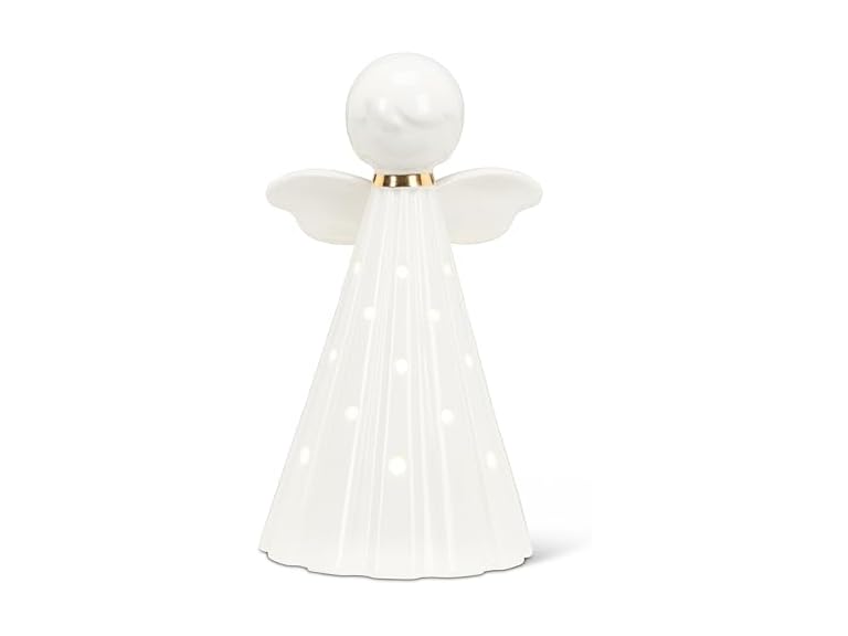 - (1) Abbott Collection Large Simple Angel Decorative Figurine with LED Lights - Ceramic, White (8 inches H)