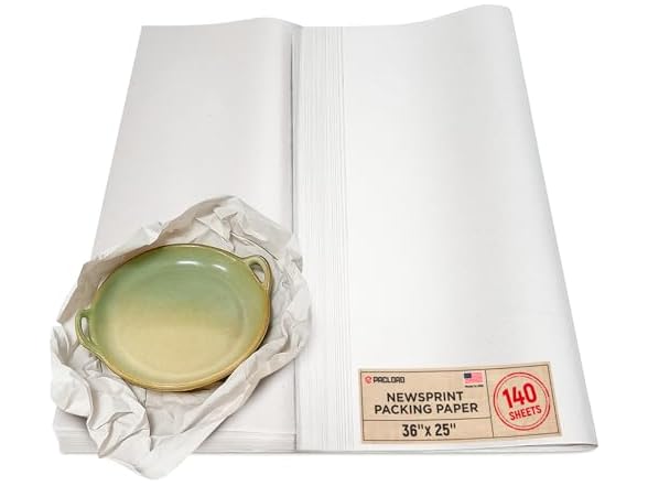 - USA-Made Newsprint Paper Sheets: Paclord 36" x 25" newsprint paper sheets provide a large supply of high-quality, USA-Made white wrapping paper, perfect for shipping, moving, and packing. 140 sheets of packing paper keep you stocked for a long time without need to restock